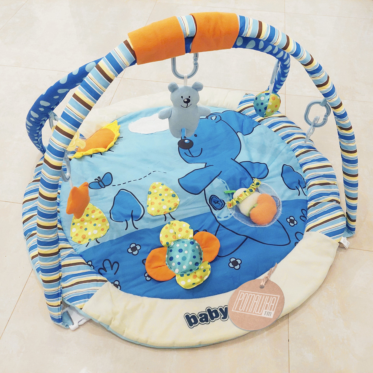 Іграшки можна міняти місцями і знімати, а також додавати інші для захоплюючих ігор поза килимком. Їх можна взяти з собою в сусідню кімнату або в дитячий садок, Килимок, що розвиває, виконаний в яскравій кольоровій палітрі. Виробник доповнив його тематичними зображеннями, що ефективно залучають дітей до гри. Намальовані звірі стають їх першими друзями.